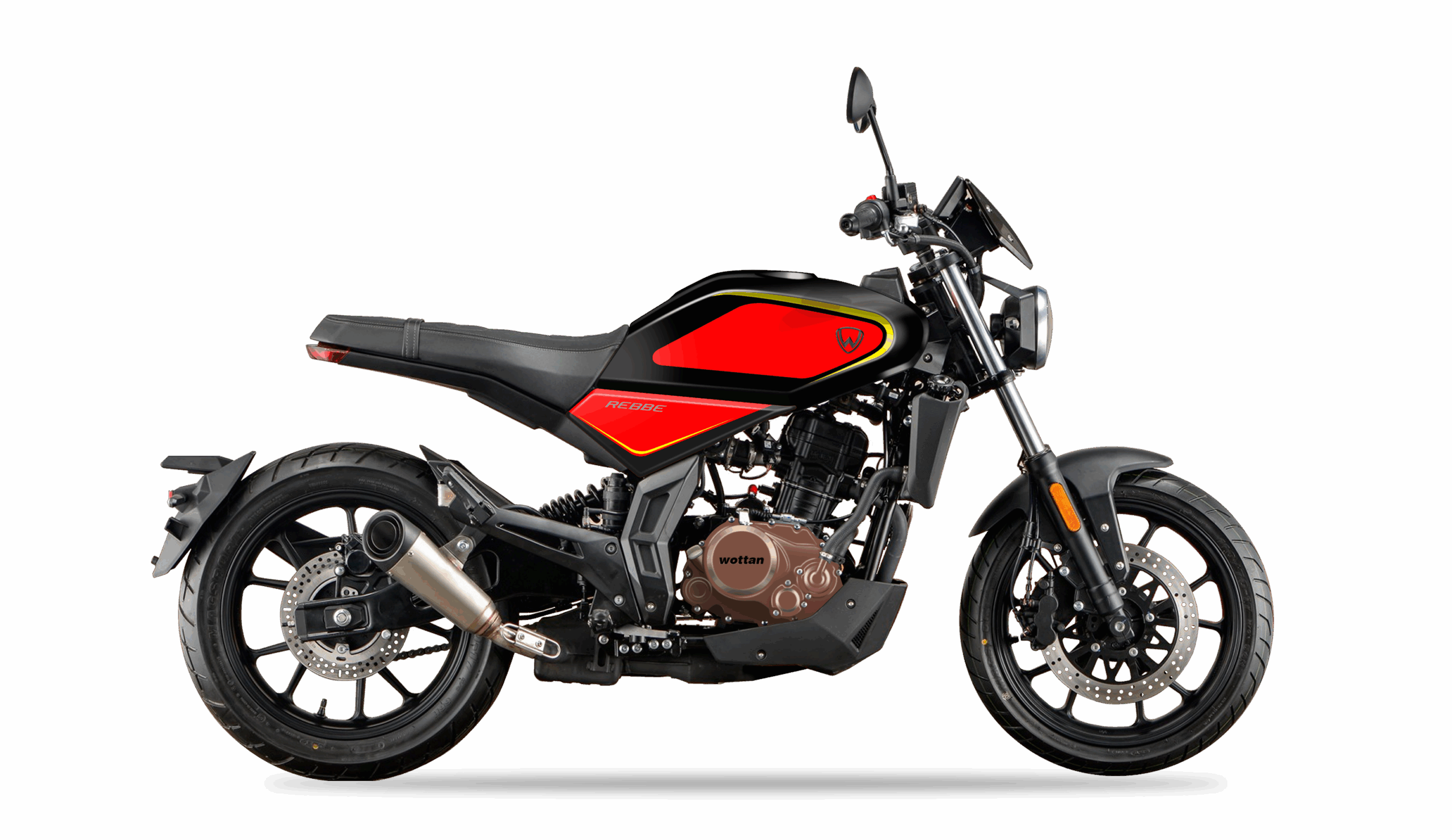 La Wottan Rebbe 125 è una moto moderna dallo stile retrò, ideale per chi cerca un mezzo leggero, versatile e piacevole da guidare. Il motore 125 cc Euro 5 con iniezione elettronica garantisce prestazioni fluide e consumi ridotti, mentre la posizione di guida naturale e le sospensioni ben calibrate offrono comfort in ogni situazione.